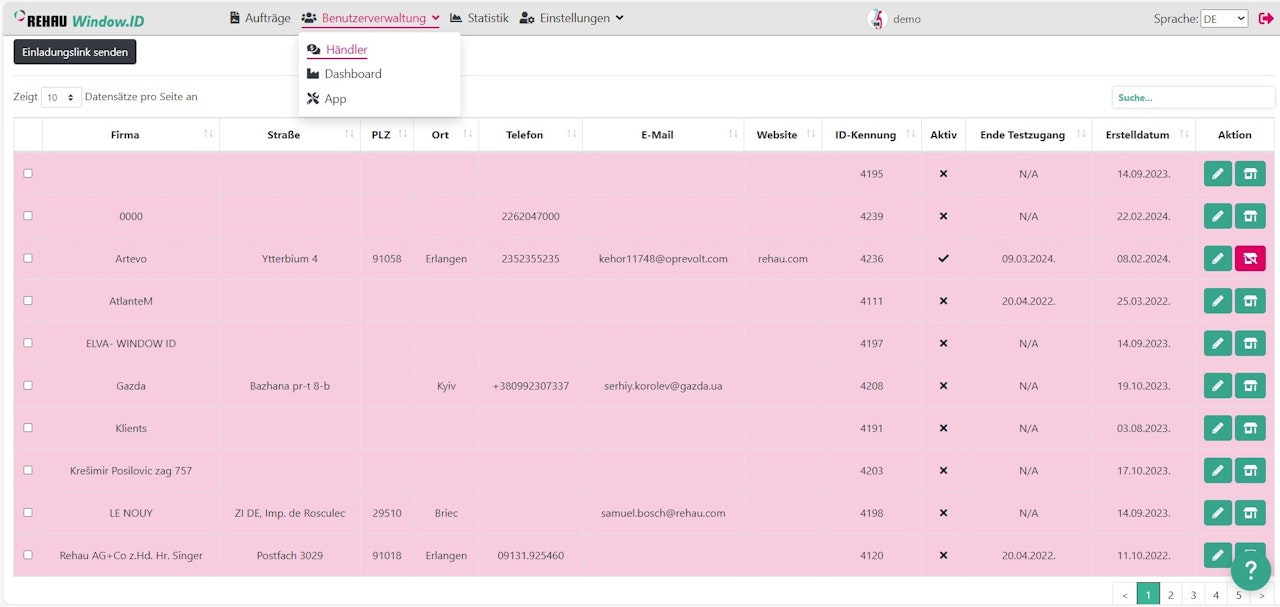 In diesem Fall wird automatisch ein Konto mit den Informationen Ihrer Händler in der Window.ID Software erstellt. Dieses Konto ist standardmäßig deaktiviert. Sie müssen das Konto und damit den Zugriff des Händlers auf das Dashboard aktivieren, wie im folgenden Schritt beschrieben.