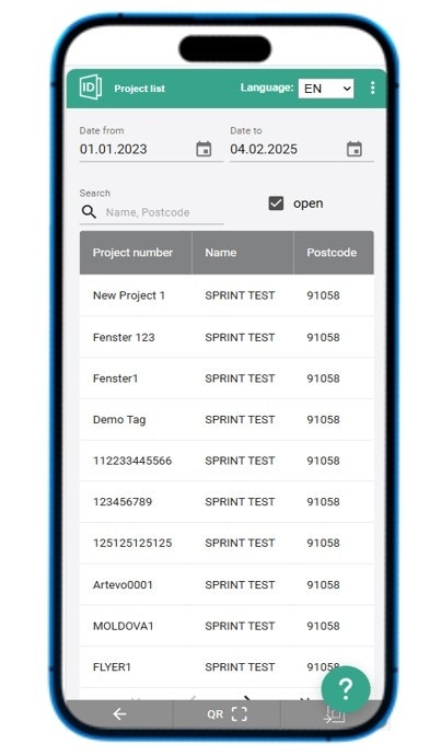 Wszystkie projekty są dostępne na "Liście projektów". W tym miejscu można wyszukiwać według nazwy firmy lub kodu pocztowego, a także filtrować projekty według daty, dzięki czemu żaden projekt nie zostanie pominięty.